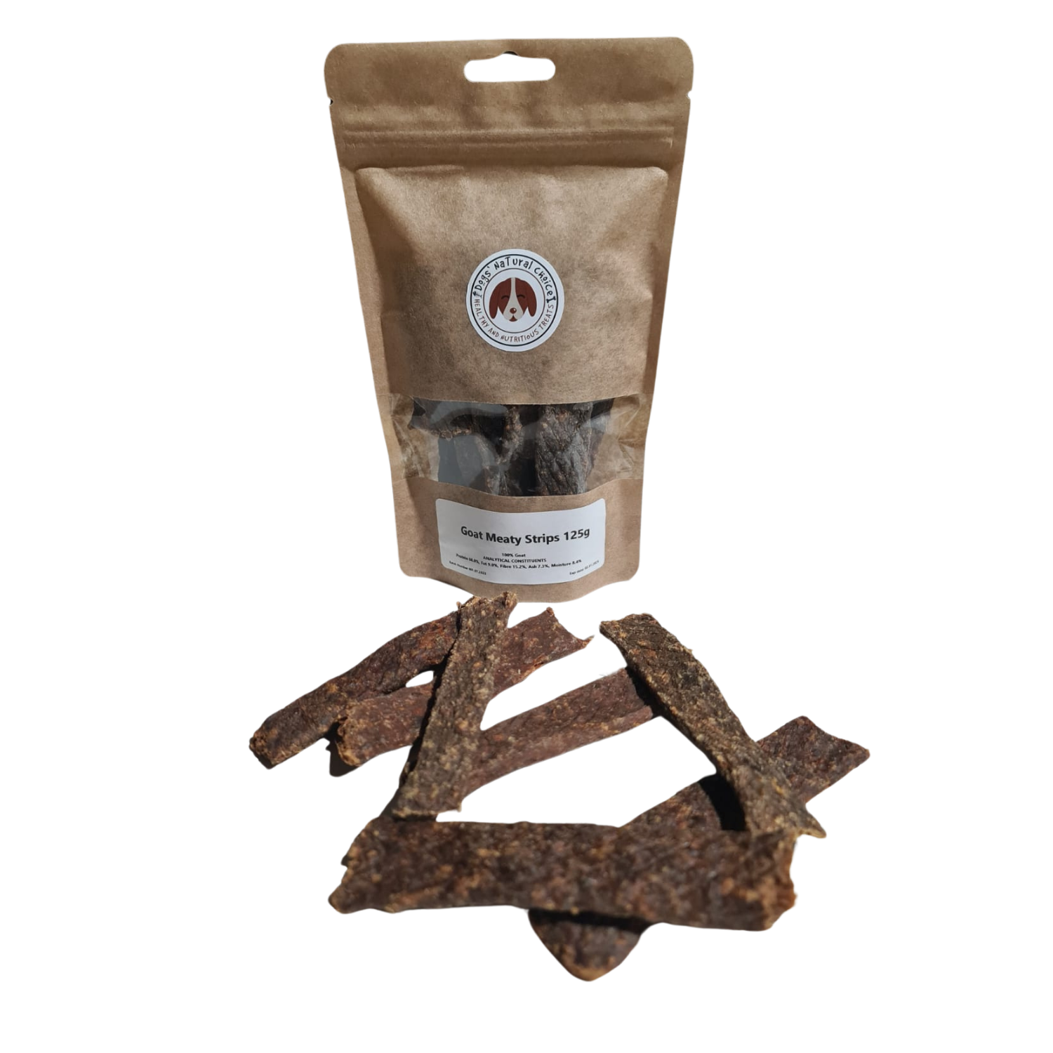 Measuring around 12cm in length, their soft texture ensures gentle chewing, suitable for dogs of all sizes and ages. Whether used as a reward or for training, our Natural Goat Meaty Strips are destined to become a beloved favourite in your dog's treat collection, delivering both nourishment and satisfaction. Treat your loyal companion to the premium goodness they deserve today!
